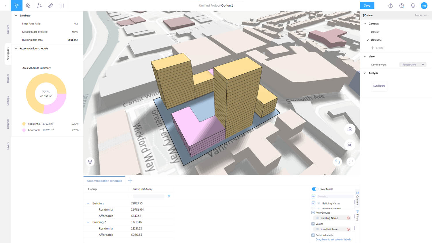The idea behind Blue Ocean AEC’s Skema is that it will speed up time and deliver multiple alternatives for the user to explore. When they narrow it down, they can go and look at the detailed buildings that are generated in literally minutes, reconstituting a new model out of previous Revit data. Models will be a combination of layouts that they’ve done, and some blank space blocked out for elements that need to exist, but haven’t been laid out yet.