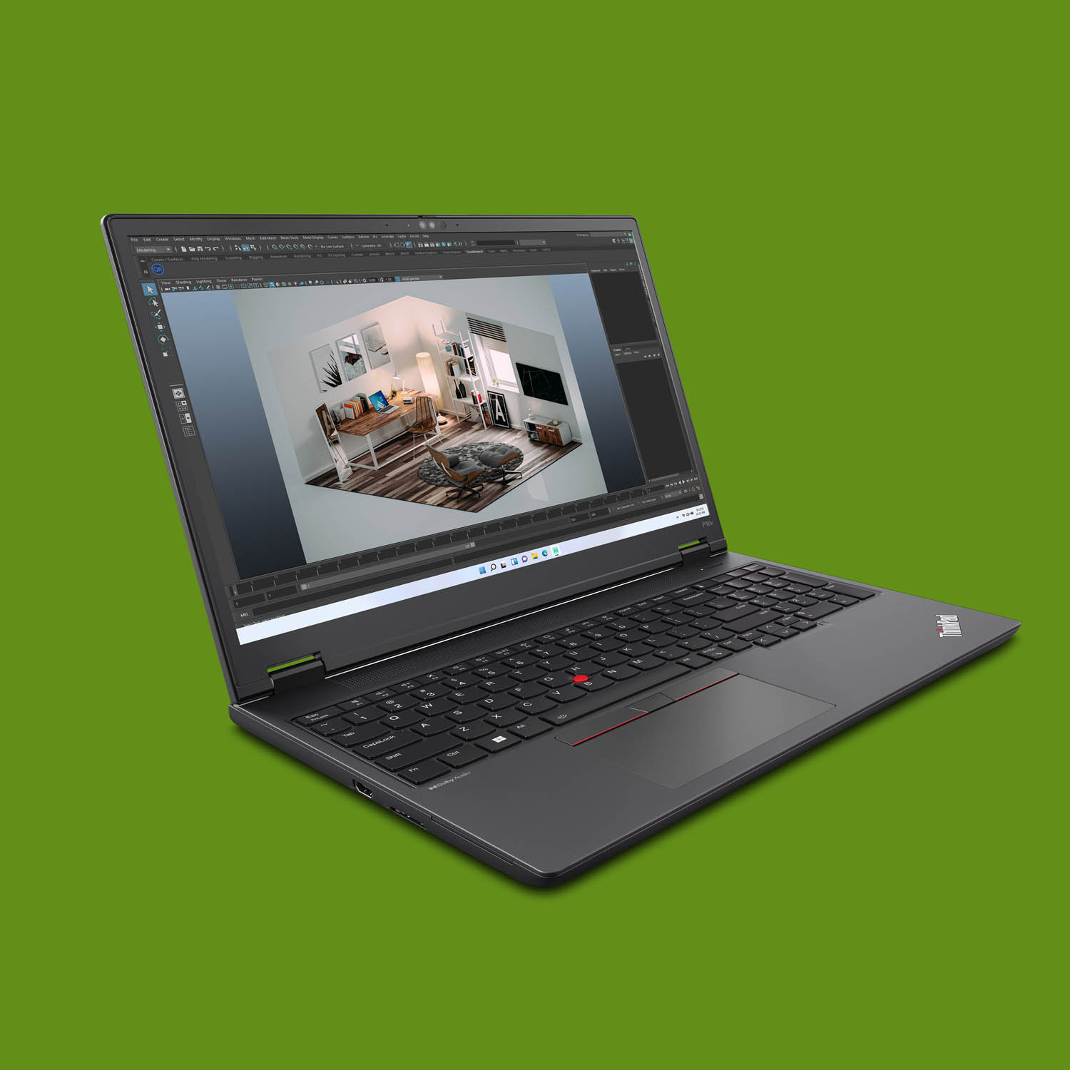 The ThinkPad P16v includes the same integrated AMD Radeon 780M GPU but can also be configured with the significantly more powerful Nvidia RTX 2000 Ada Generation laptop GPU (8 GB), which is suitable for CAD and entry-level visualisation workflows.