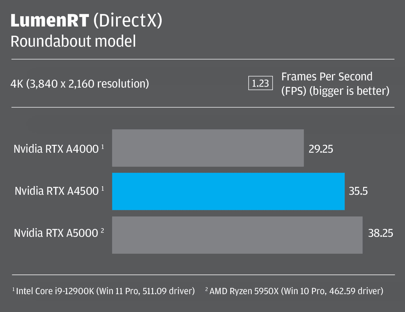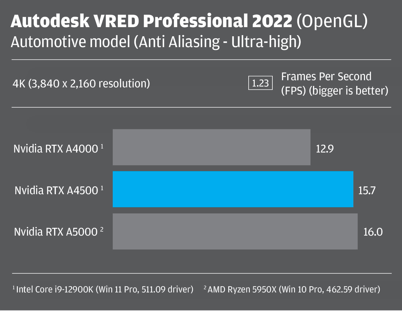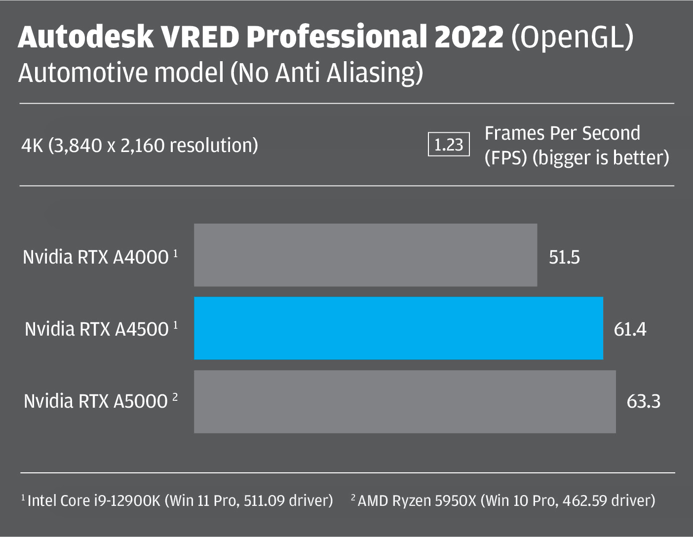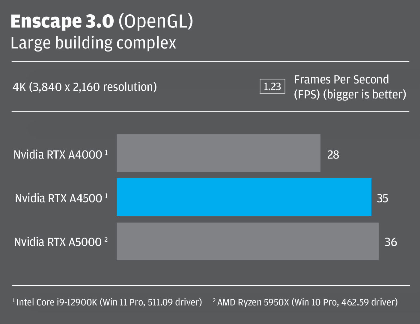 All tests were carried out using the Intel Core i9-12900K-based Scan 3XS GWP-ME A124C workstation at 4K (3,840 x 2,160) resolution using the latest 511.09 Nvidia driver.