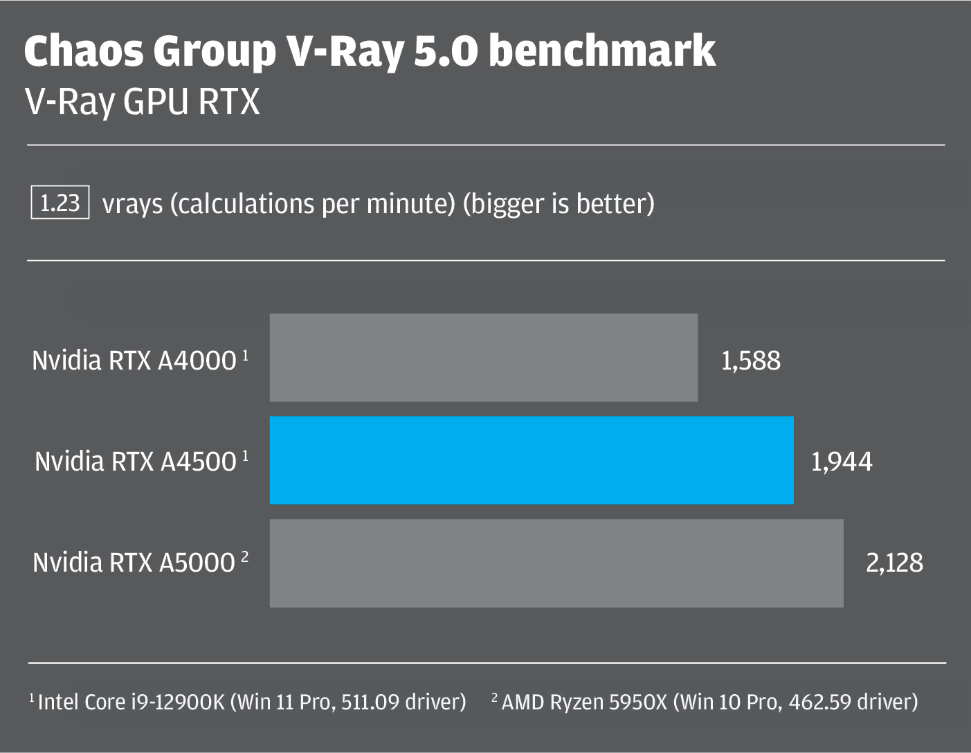 In our GPU rendering benchmarks, the lead of the RTX A5000 over the RTX A4500 was much bigger.