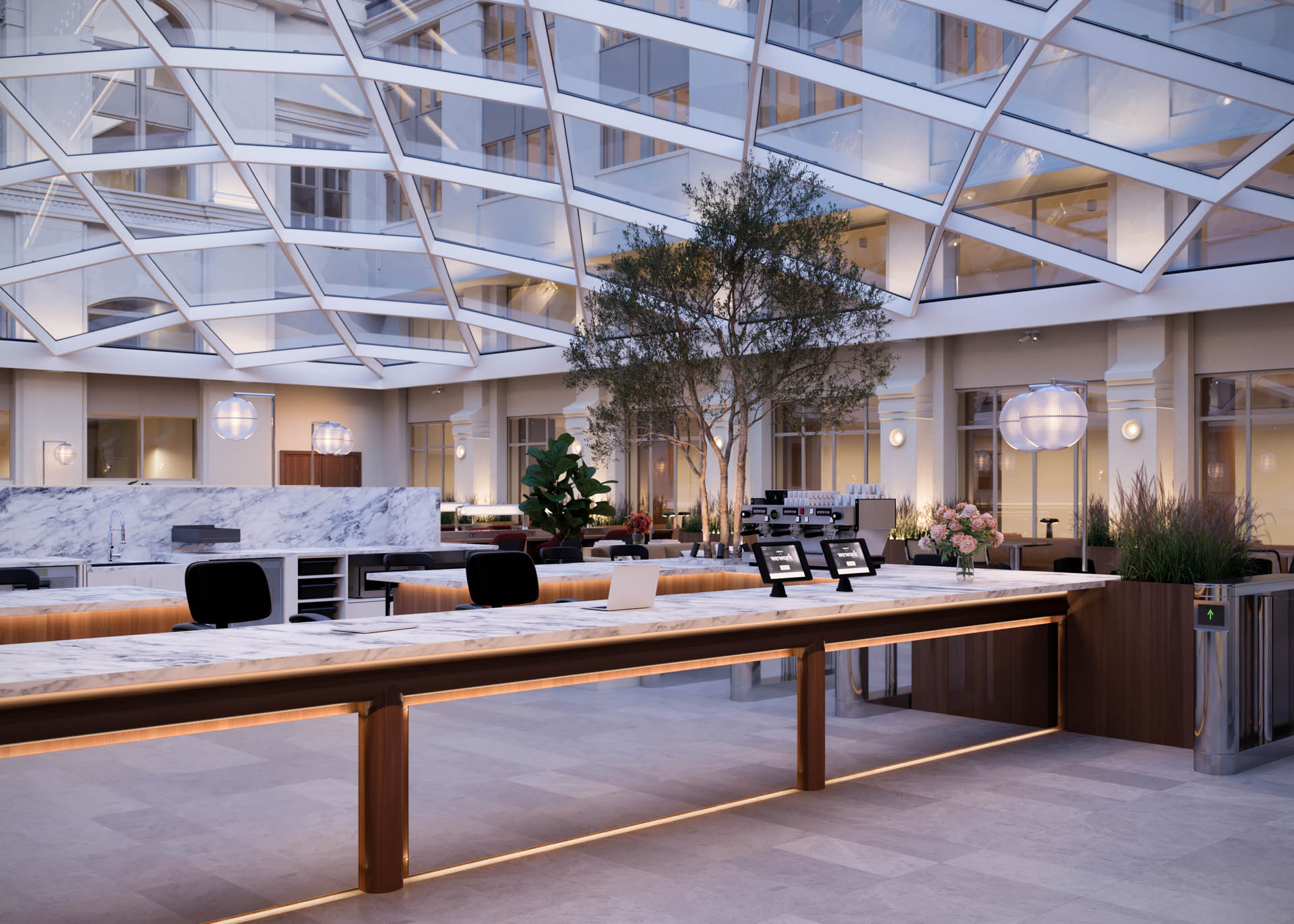 Long before its official opening in February 2023, Williams and his team were set the challenge of producing high resolution stills and animations depicting what this building would look like once it had been renovated and fitted out to WeWork’s specifications.
