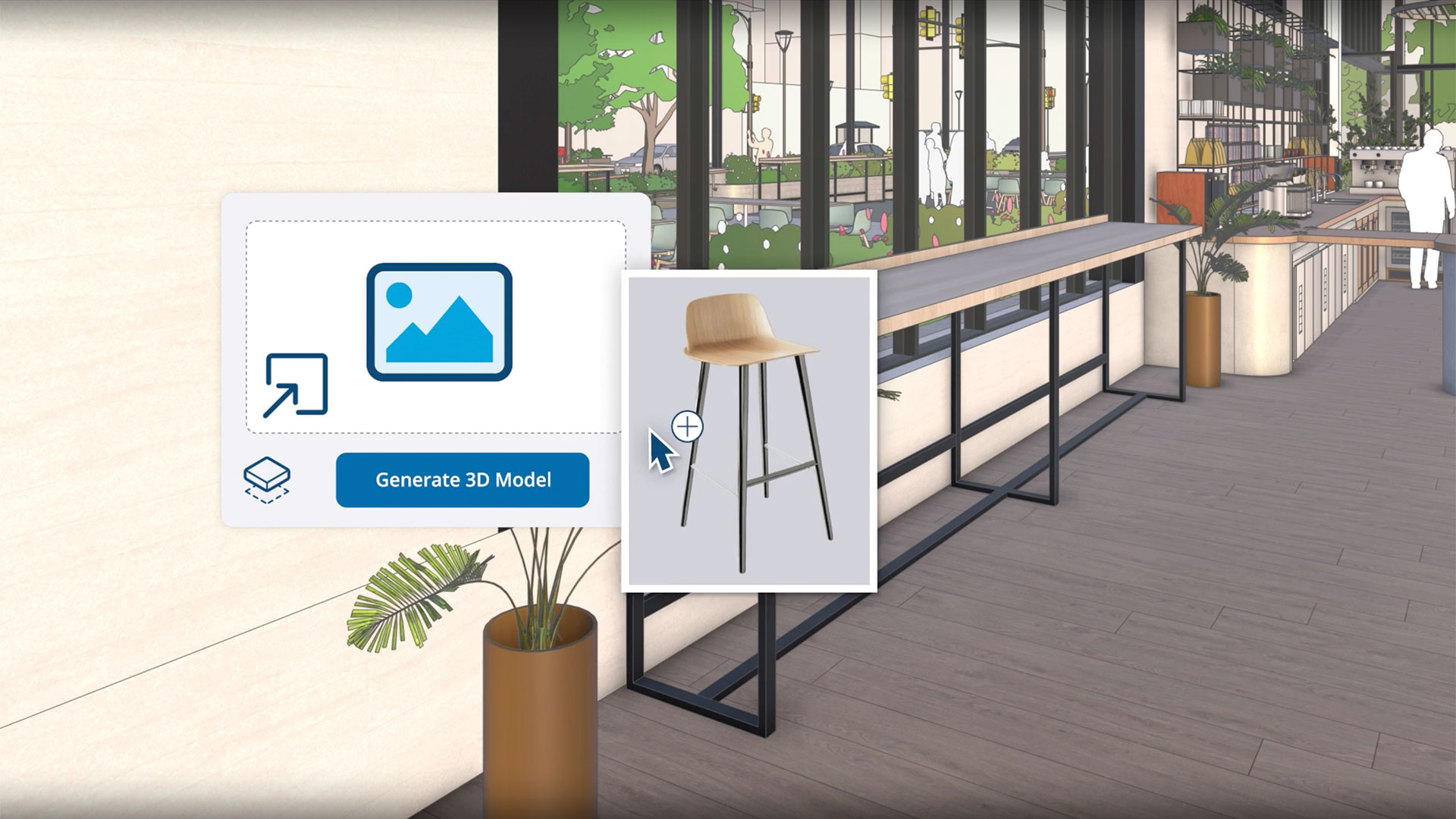 Users simply upload an image or describe what they want to create, and AI Assistant generates the 3D object. It can be used as an alternative to 3D Warehouse, or to bypass the need to model from scratch.